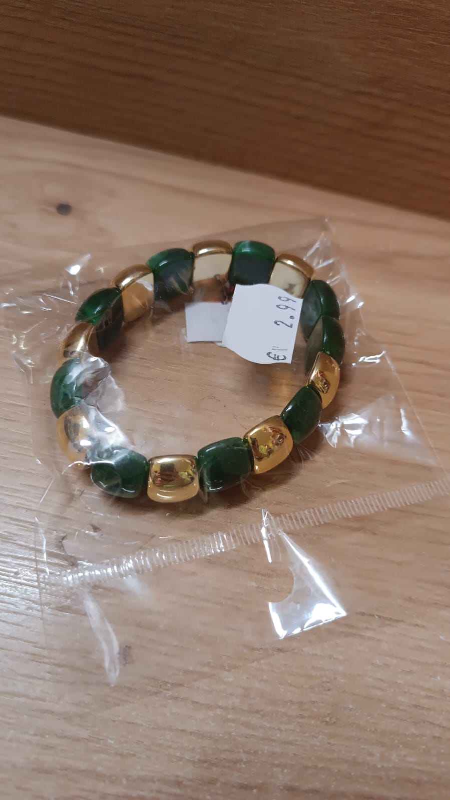 PULSERA ELASTICA VERDE Y DORADA